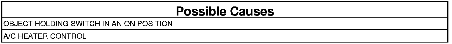 1. Inspect the A/C Heater Control for an object or debris holding the A/C On/Off Control Switch in an On position.