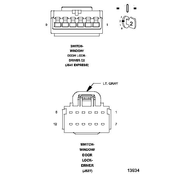 NOTE: Even though the JS27 (Convertible) is not equipped with the Express (AUTO) Up feature, the front window circuits are still referred to as "EXPRESS".