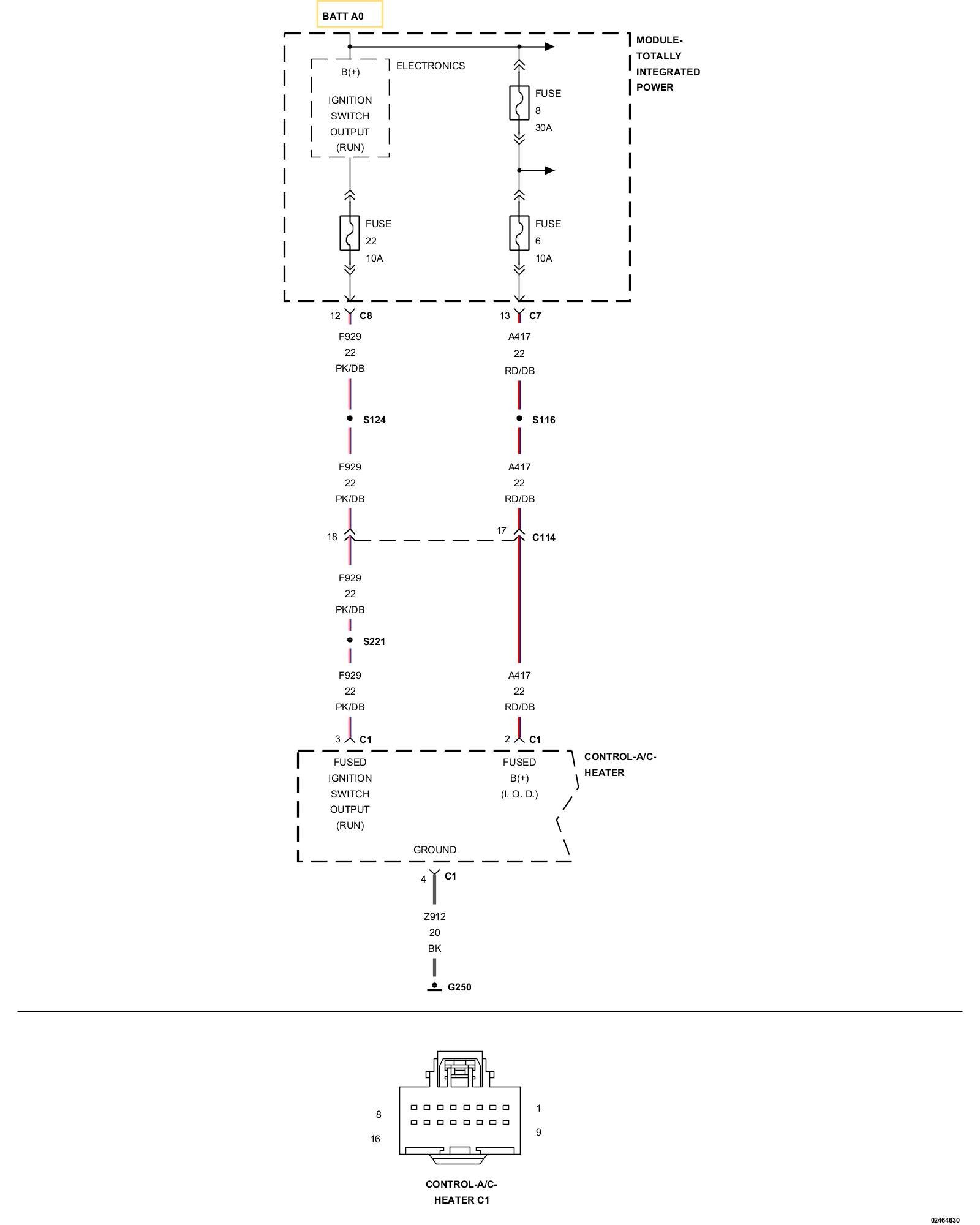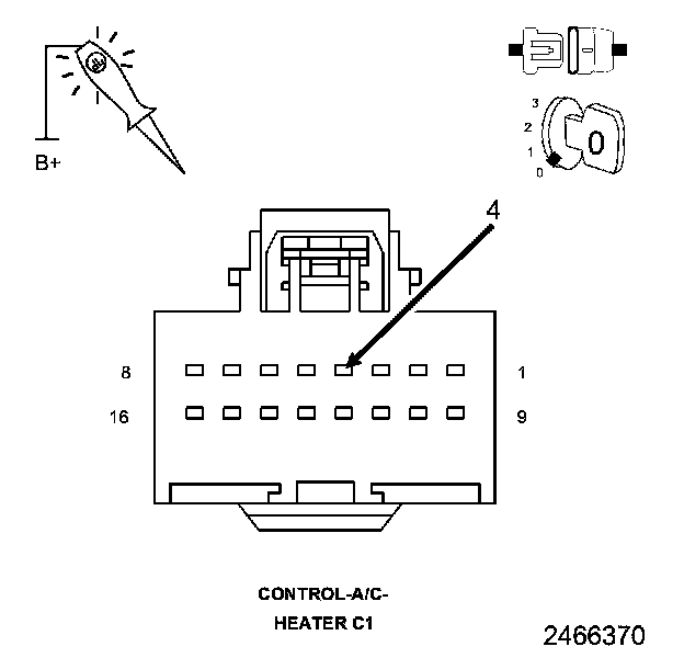 2. While back probing, measure the voltage of the (A417) Fused B(+) circuit in the A/C Heater Control C1 harness connector.