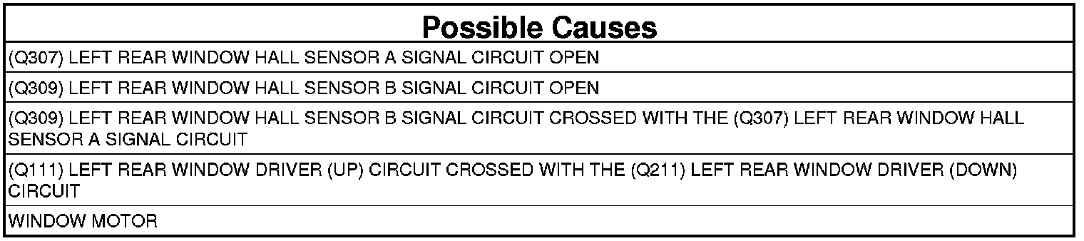 - Repair the (Q307) Left Rear Window Hall Sensor A Signal circuit for an open.