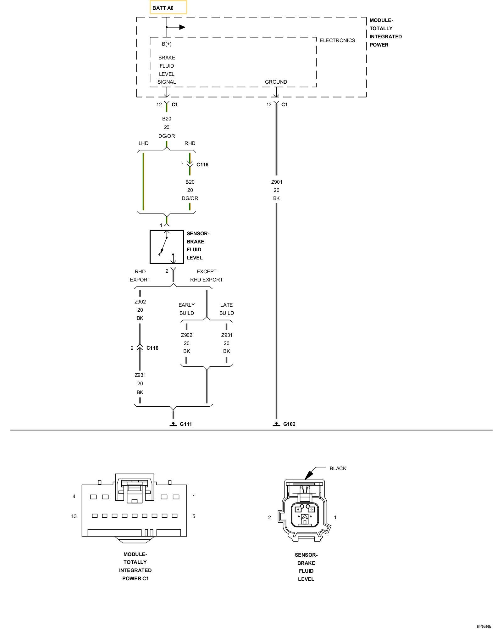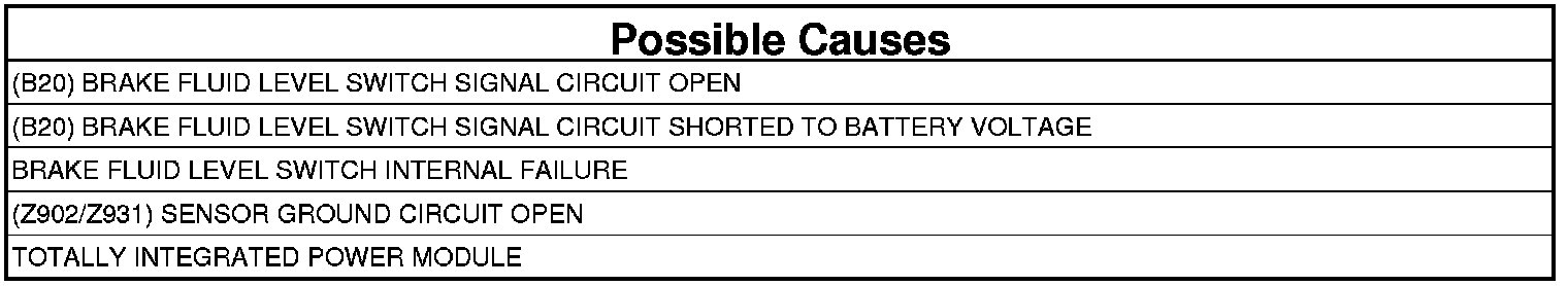 - Repair the open in the (B20) Brake Fluid Level Switch signal circuit.