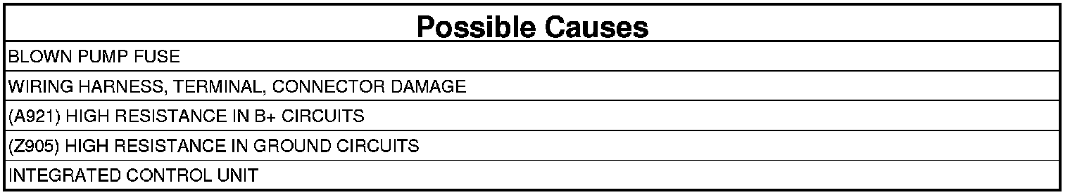 The ABM detects low pump motor feedback voltage with actuation of the pump motor relay.