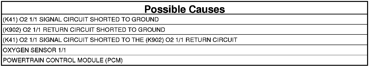 - Repair the (K41) O2 1/1 Signal circuit for a short to ground.