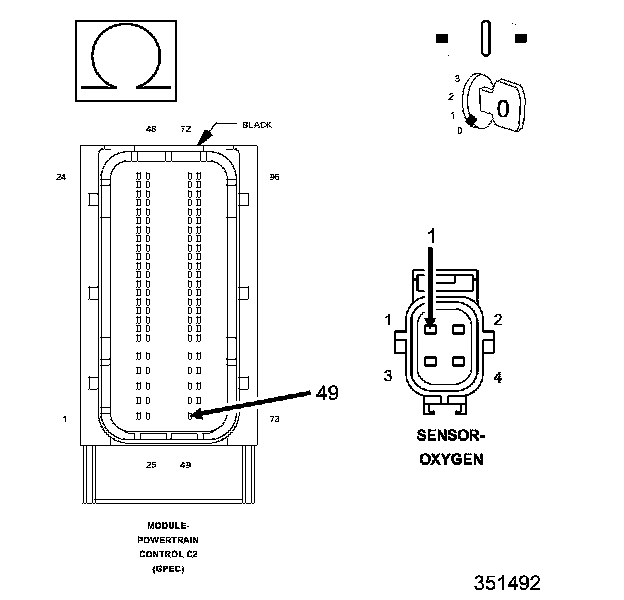 NOTE: The O2 heater element resistance should be measured at 70° F (21.1° C). The resistance value will vary at different temperatures.