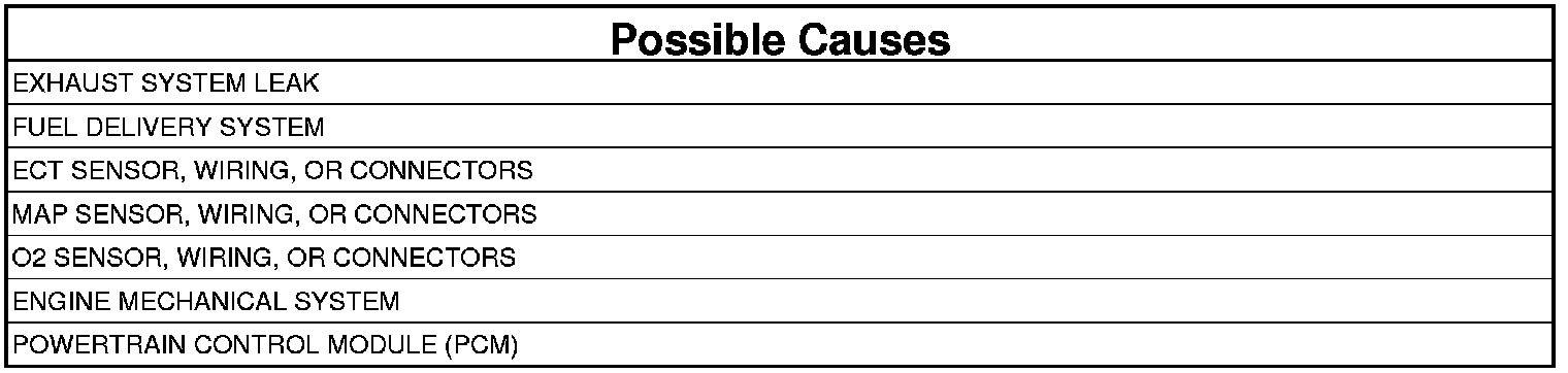 The Powertrain Control Module (PCM) monitors the Adaptive Memory factor (a combination of Short Term Adaptive and Long Term Adaptive). If the total fuel addition exceeds a calibrated threshold for an extended period, a fuel system lean fault is stored. If the total fuel subtraction exceeds a calibrated threshold, a fuel system rich fault is stored. Two Trip Fault. Three good trips to turn off the MIL.