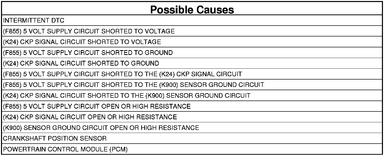- Repair the (K24) CKP Signal circuit for a short to the (K900) Sensor Ground circuit.