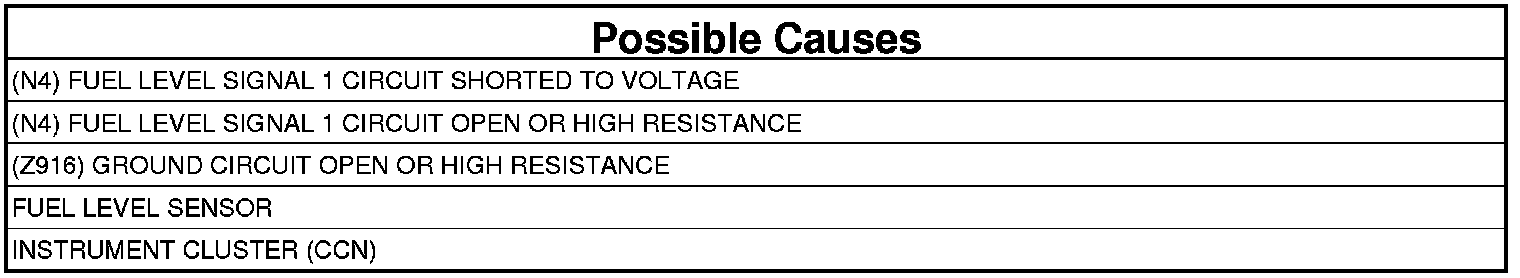- Repair the (N4) Fuel Level Signal 1 circuit for an open circuit or high resistance.