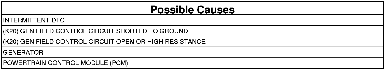 - Repair the (K20) Gen Field Control circuit for an open circuit or high resistance.