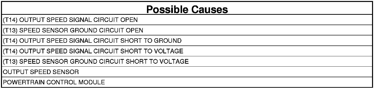 - Repair the (T14) Output Speed Signal circuit for a short to voltage.