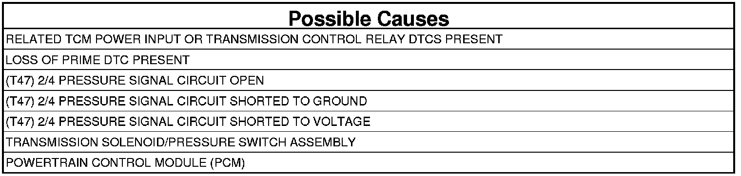 - Repair the (T47) 2/4 Pressure Signal circuit for an open.