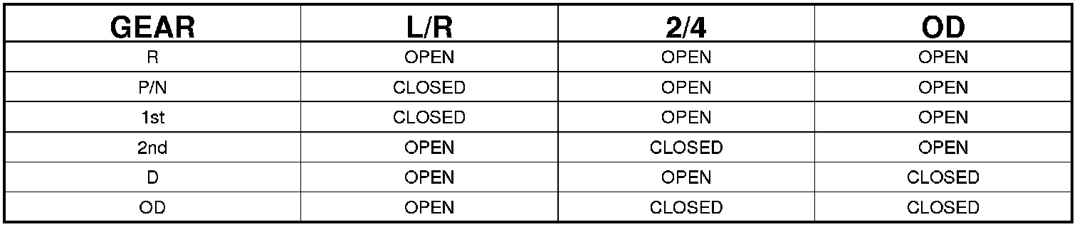 The Transmission control system uses three pressure switches to monitor the fluid pressure in the LR, 2/4, and OD elements. The pressure switches are continuously monitored for the correct states in each gear. The 2/4 pressure switch monitors the fluid pressure to the 2/4 clutch to confirm proper operation of the 2/4 solenoid. If the 2/4 pressure switch is identified as closed in Park or Neutral, the code will immediately be set and normal operation will be allowed for that given ignition start. If the 2/4 pressure switch is identified as closed in 1st or 3rd gear, the code will immediately be set, and the trans will shift to 2nd or 4th gear as appropriate. If the 2/4 pressure switch fails three times (in 1st or 3rd gear) during a single key start, the transmission will go into limp-in and the MIL will illuminate.