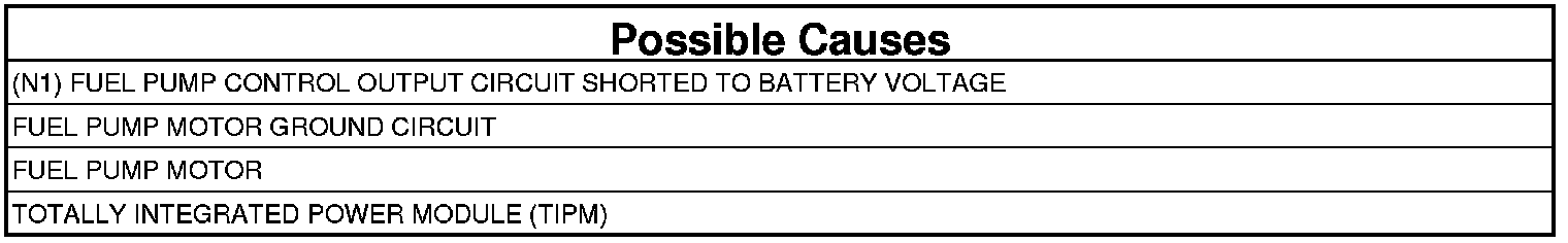 2. (N1) FUEL PUMP CONTROL OUTPUT CIRCUIT SHORTED TO BATTERY VOLTAGE