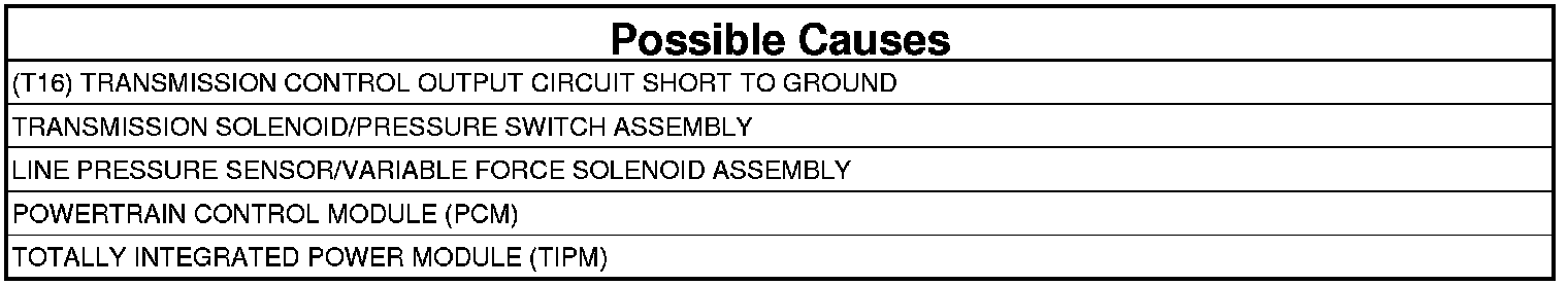 - Repair the (T16) Transmission Control Output circuit for a short to ground.