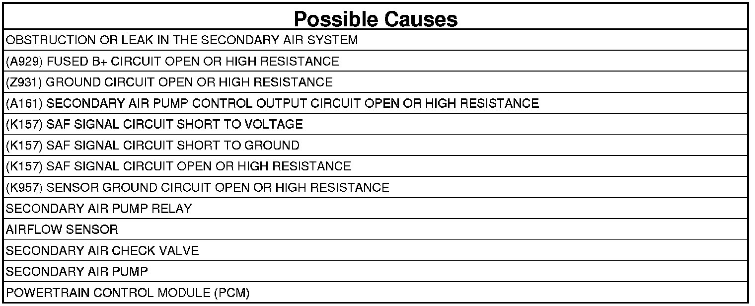 - Repair the (A161) Secondary Air Pump Relay Output circuit for an open circuit or high resistance.