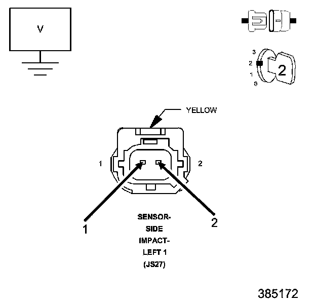 4. Measure the voltage of the (R17) Left Side Impact Sensor 2 Signal circuit and (R19) Sensor Ground circuit at the Left Side Impact Sensor 2 connector and ground.