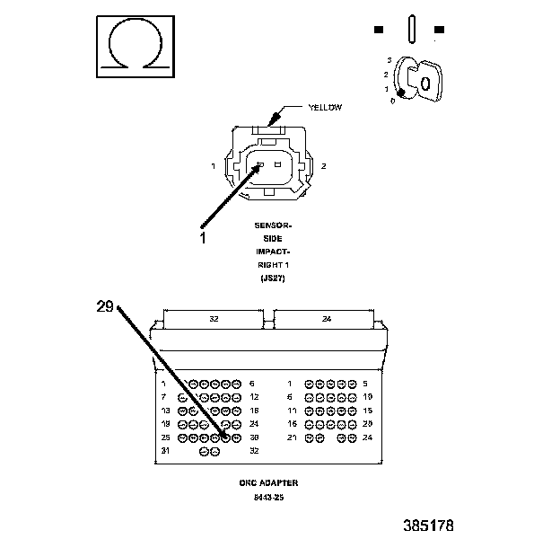 1. Measure the resistance of the (R17) Left Side Impact Sensor 2 Signal circuit between the Left Side Impact Sensor 2 connector and the ORC 8443-25 Adaptor.