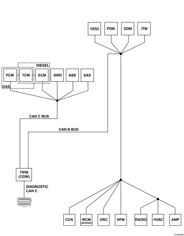 The fuel level signal is a direct input to the Cluster. The fuel level signal is sent to the TIPM over the CAN B bus circuit. The PCM receives the fuel level signal from the TIPM over the CAN C bus circuit.