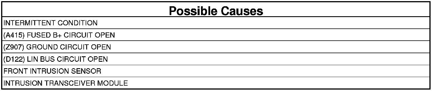 If the Intrusion Transceiver Module (ITM) does not receive messages from the Front Intrusion Sensor over the LIN bus.