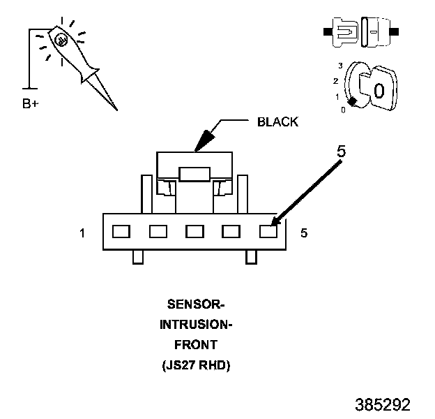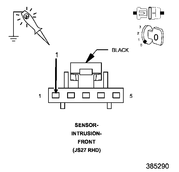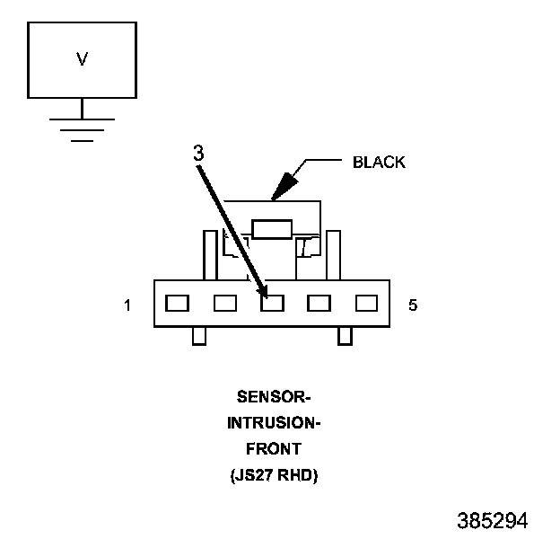 1. Using a 12-volt test light connected to 12-volts, check the (Z970) Ground circuit at the Intrusion Sensor connector.