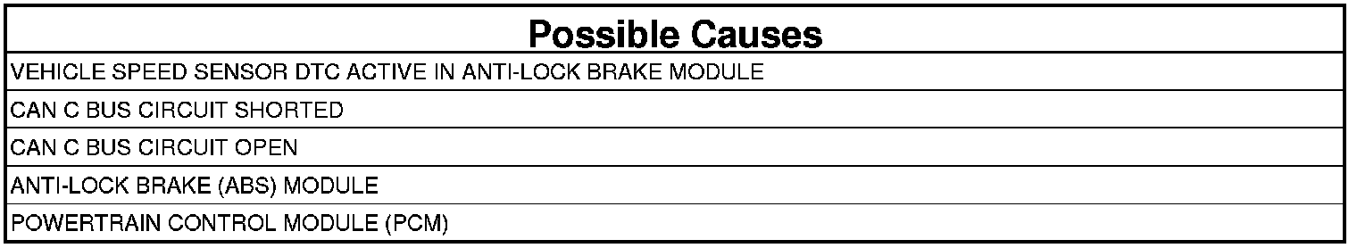 The ABS Module sends an implausible distance signal over the CAN C Bus circuit to the PCM.