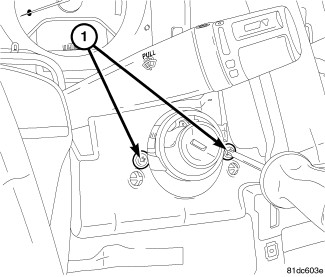 1. Install the WCM retaining screw (1) and flex the retaining tab to secure the WCM to he ignition switch/cylinder.