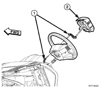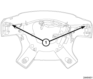 5. Install the horn button assembly (2) and install the three retainers (1).