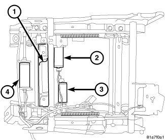 The power seat adjuster is made up of the upper and lower power seat adjuster assemblies. The upper power seat adjuster (1) contains two reversible motors that are connected to worm-drive gearboxes that move the seat adjusters through screw-type drive units. These motors are the height adjust motor and the front tilt motor. The lower power seat adjuster (2) contains one reversible motor that is connected to a worm-drive gearbox that moves the seat adjuster through a screw-type drive unit. This motor is responsible for the fore and aft movement of the driver seat. Each motor contains a self-resetting circuit breaker to protect it from overload. Consecutive or frequent resetting of the circuit breakers may damaged the motors.