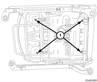 8. Install the seat cushion bolts (1). Tighten to 11 Nm (8 ft.lbs.).