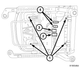 4. Install the seat pan cushion fasteners (1). Tighten to 11 Nm (8 ft.lbs.).