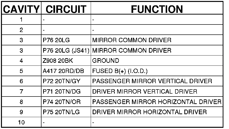 Power Mirror Switch: Diagrams