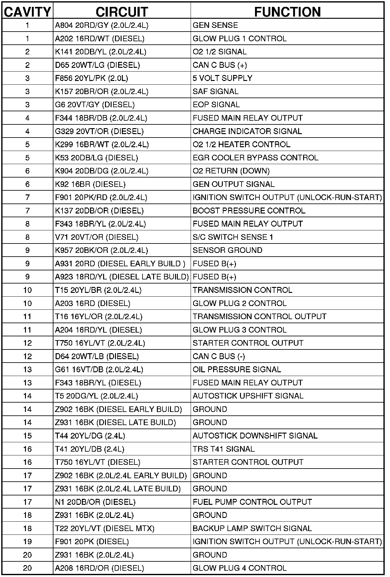 C103 (2.0L/2.4L/DIESEL) - (ENGINE SIDE) 20 WAY