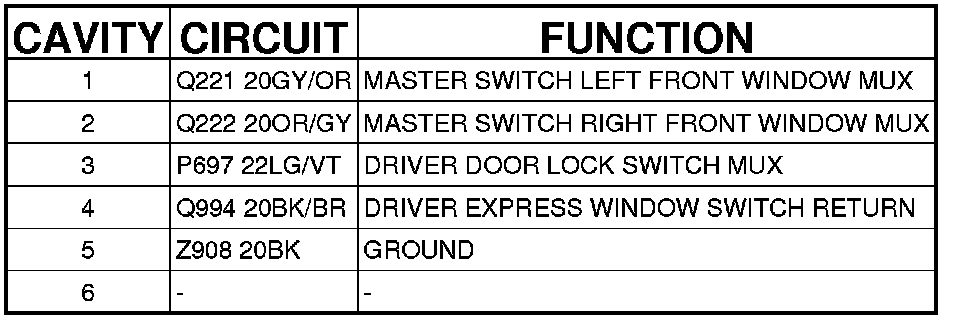 Driver Window/Door Lock Switch C2 (JS41 Express) (Driver Door) 6 Way