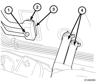11. Position the heat shield (3) onto the three studs (1) located on the dash panel in the engine compartment.