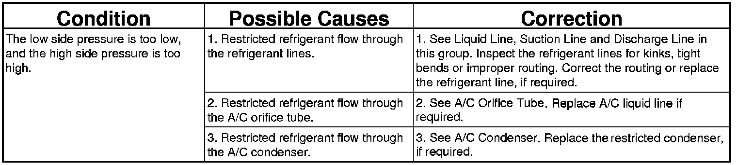 A/C PERFORMANCE TEMPERATURE AND PRESSURE