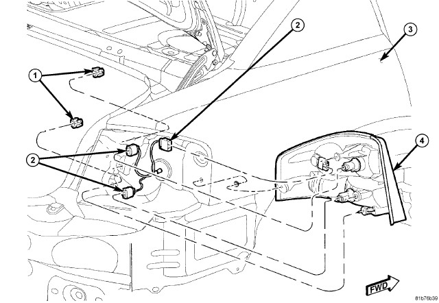 2. Connect wire connectors (3) to back of tail lamp.