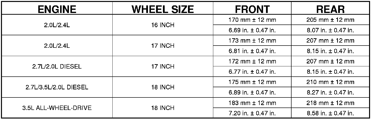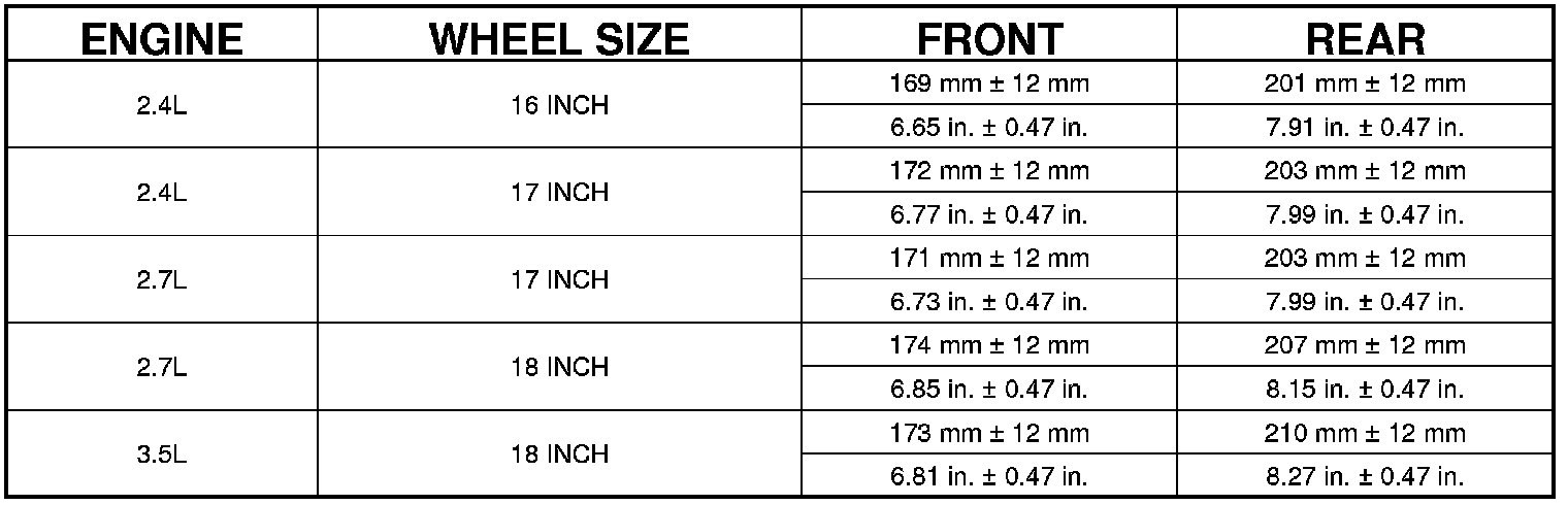 CURB HEIGHT SPECIFICATIONS - SEDAN (JS41)