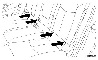 The anchors are mounted on the seat hinge frame. They are each accessed from the front of their respective seats, at each side where the seat back meets the seat cushion. There is an ISO symbol just above each anchor identifying each anchor location. These lower anchors cannot be adjusted or repaired and, if faulty or damaged, they must be replaced as a unit with the seat frame.