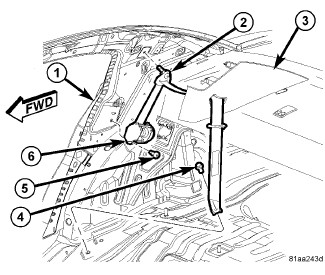 1. Place retractor and belt (6) into position in quarter panel (1).