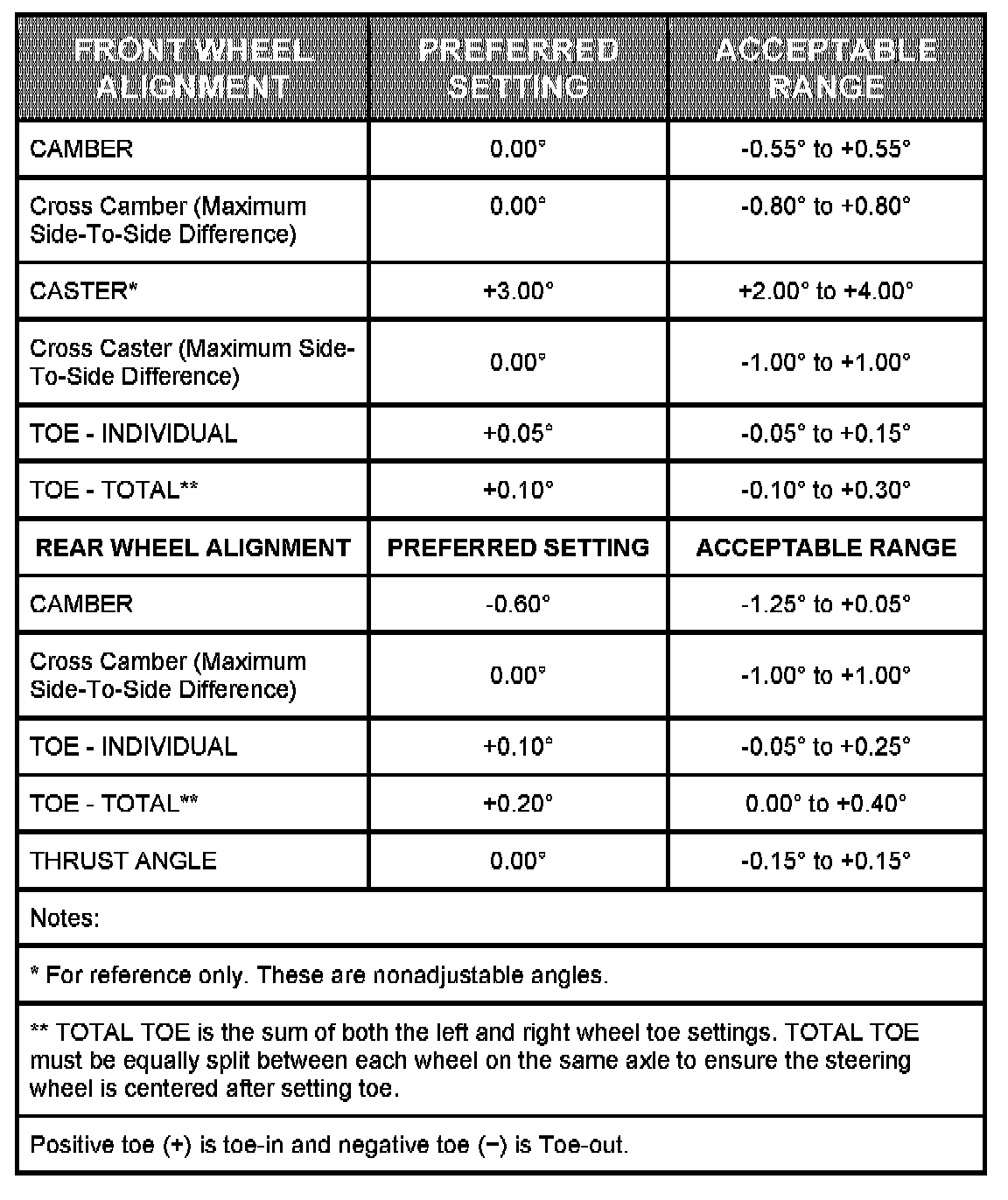 All wheel alignments are to be set with the vehicle at curb height.