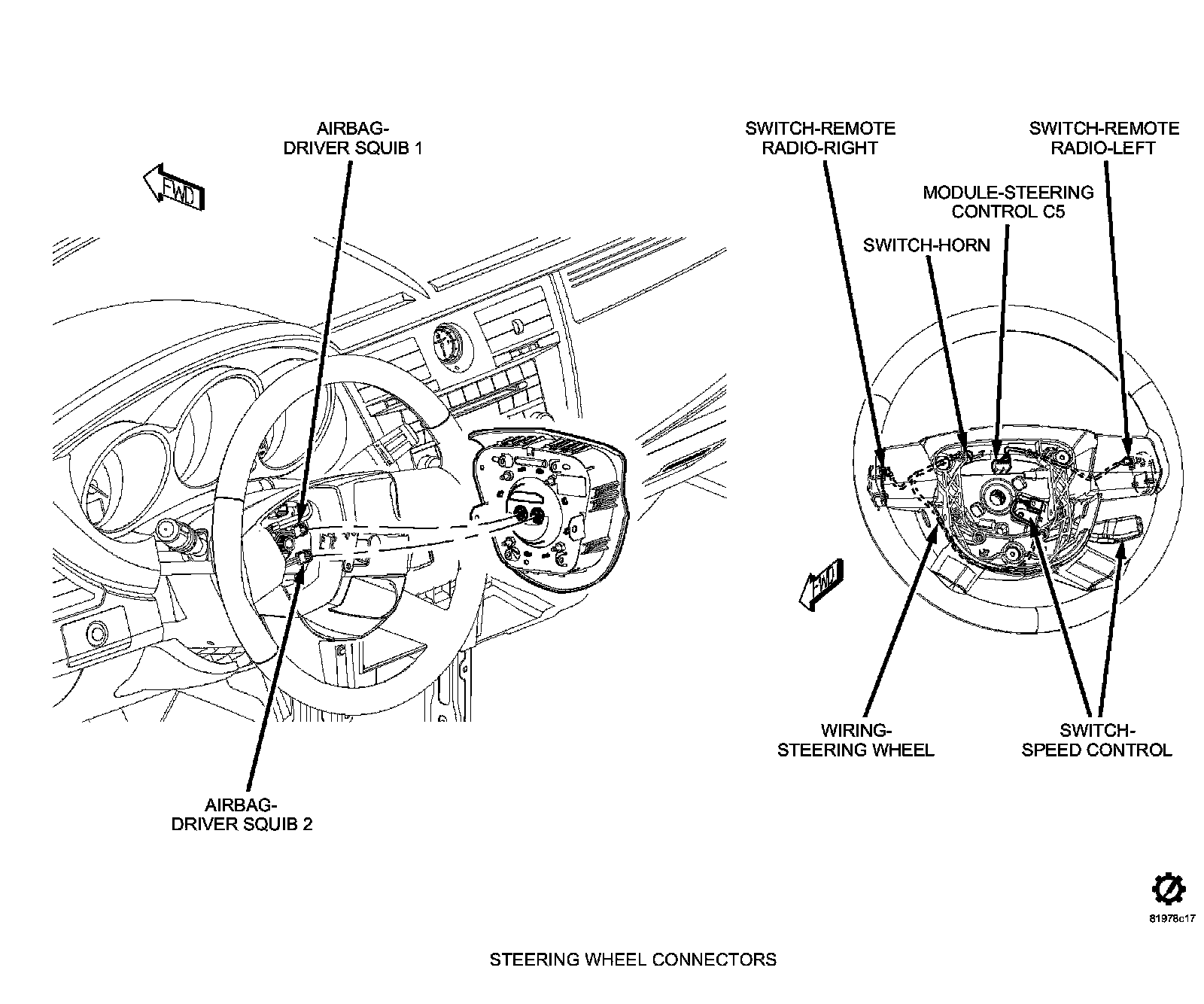 Steering Mounted Controls Communication Module: Locations