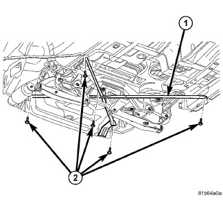 Position the rear crossbrace/reinforcement brackets (1) through the rear crossmember.