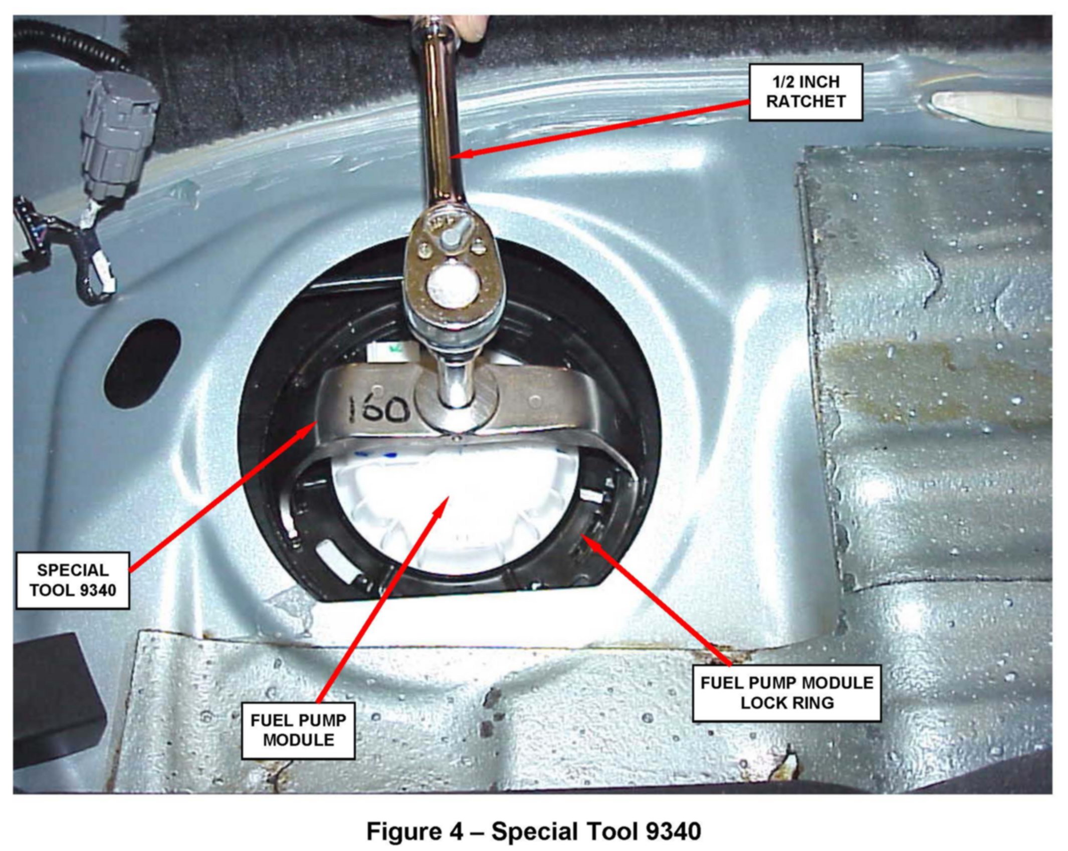 17. Remove the fuel pump module lock ring using Special Tool 9340 (Figure 4).