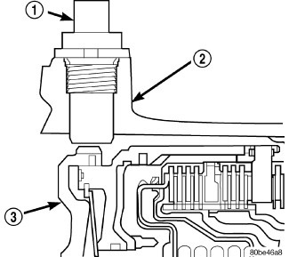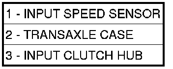 The Input Speed Sensor (1) provides information on how fast the input shaft is rotating. As the teeth of the input clutch hub (3) pass by the sensor coil, an AC voltage is generated and sent to the PCM/TCM. The PCM/TCM interprets this information as input shaft rpm.