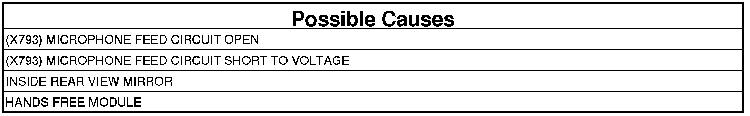 The Hands Free Module (HFM) detects high voltage on the (X793) Microphone Feed circuit.