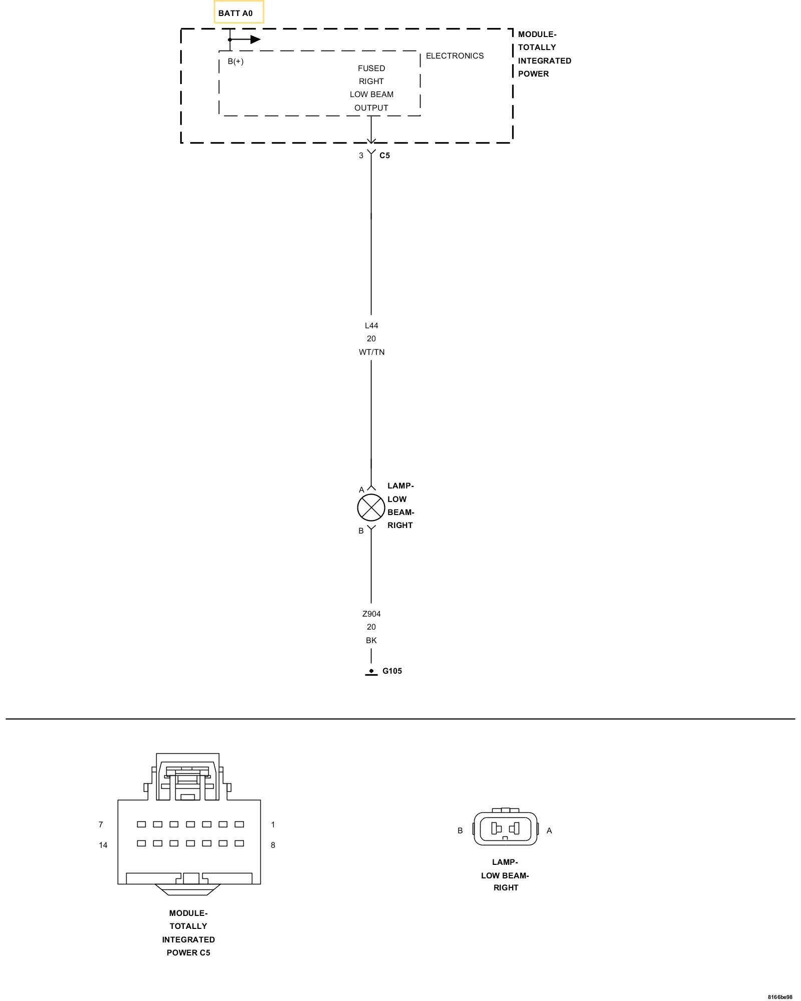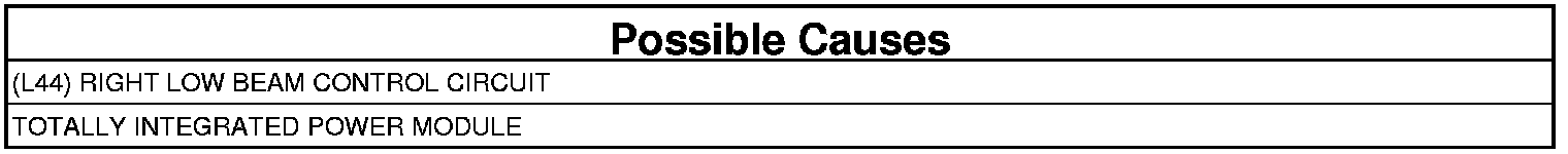 - Repair the (L44) Right Low Beam Control circuit for a short to ground condition.