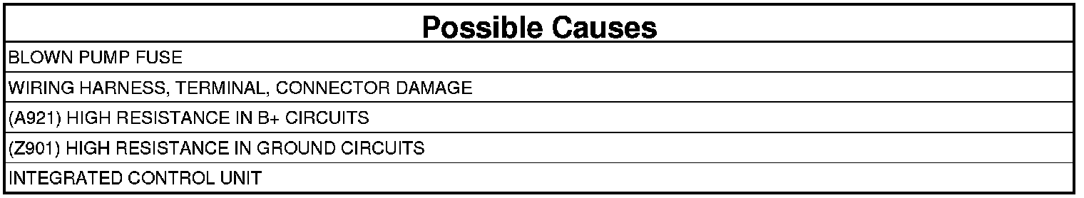 NOTE: This DTC must be active for the results of this test to be valid. If present, diagnose and repair DTC C2116-ABS PUMP MOTOR SUPPLY LOW VOLTAGE before diagnosing this DTC.
