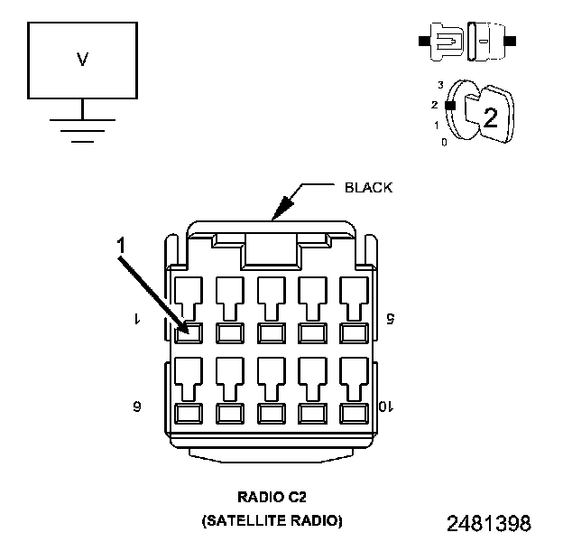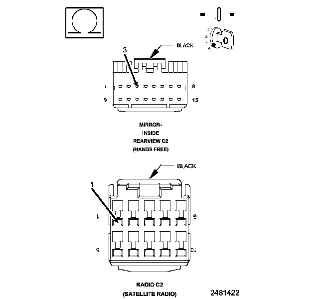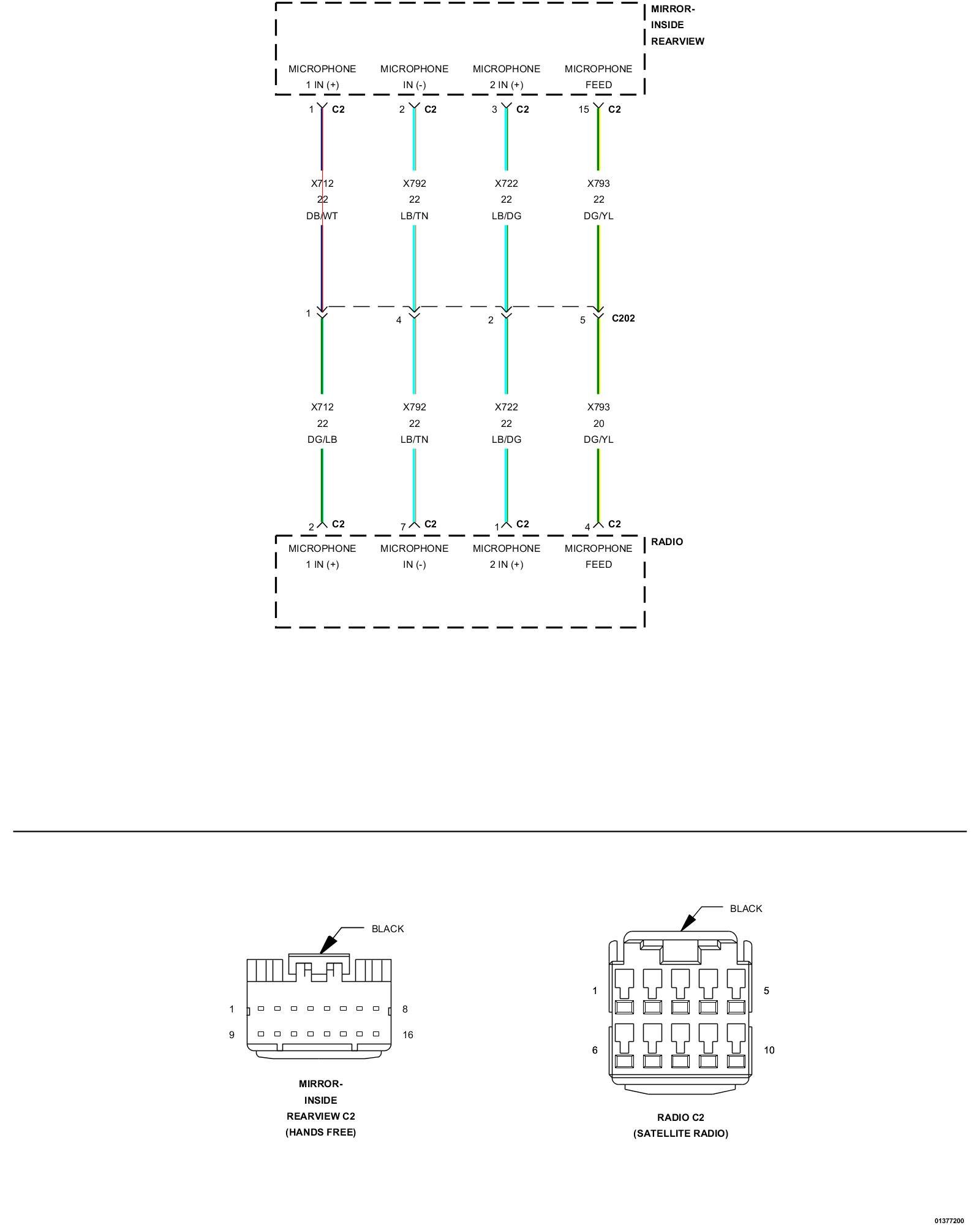 2. Measure the resistance of the (X722) Microphone 2 IN (+) circuit between the Radio C2 connector and the Inside Rearview Mirror connector.
