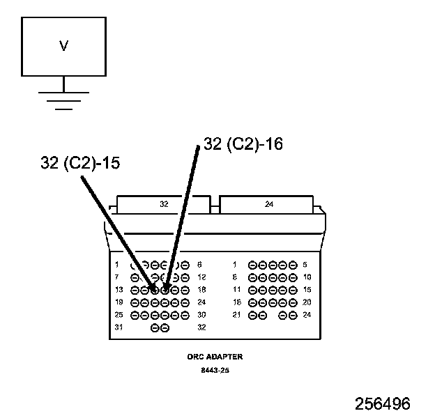 5. Measure the voltage of the (R7) Left Seat Squib 1 Line 1 circuit between the 8443-25 cavity C2-15 and ground.