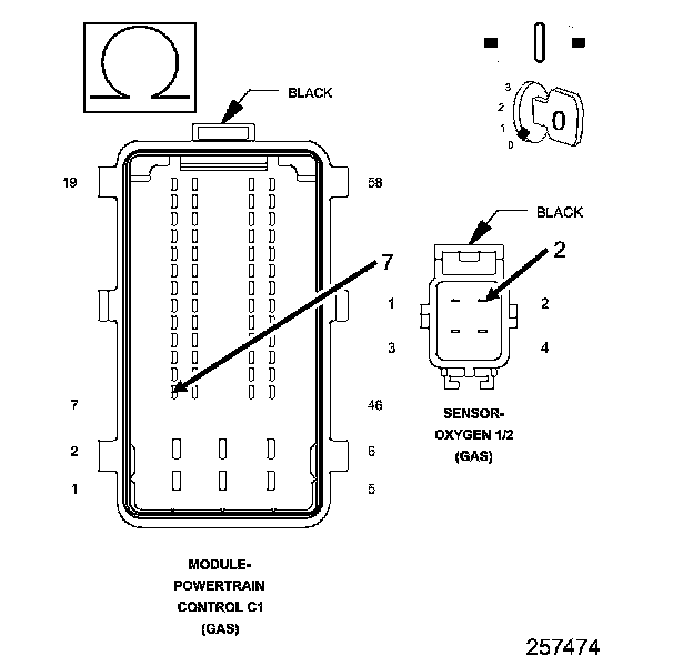 1. Using the wiring diagram/schematic as a guide, inspect the wiring and connectors between the Oxygen Sensor 1/2 and the Powertrain Control Module (PCM).