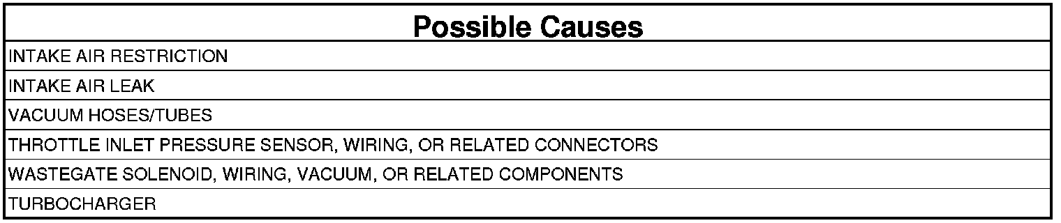 NOTE: Damaged, restricted or poorly connected intake and turbocharger related tubes may cause this DTC to set.